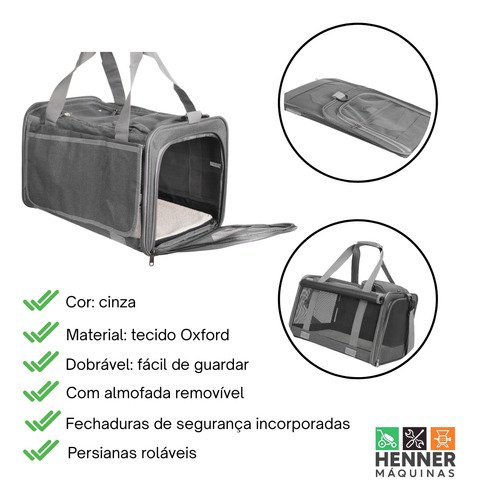 Diferenciais: Abertura superior para interação, almofada removível, encaixe para malas e bolsos organizadores.
